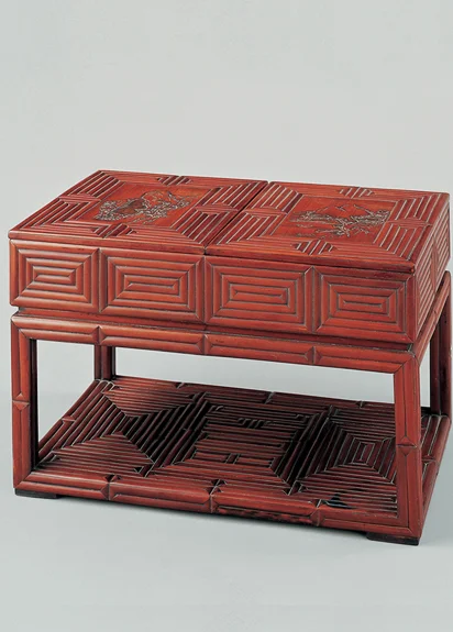 The body of this inkstone table is wood, but the outer layer is bamboo. Symbolizing the noble integrity of the literati, bamboo was a popular material for wood furniture.