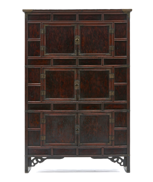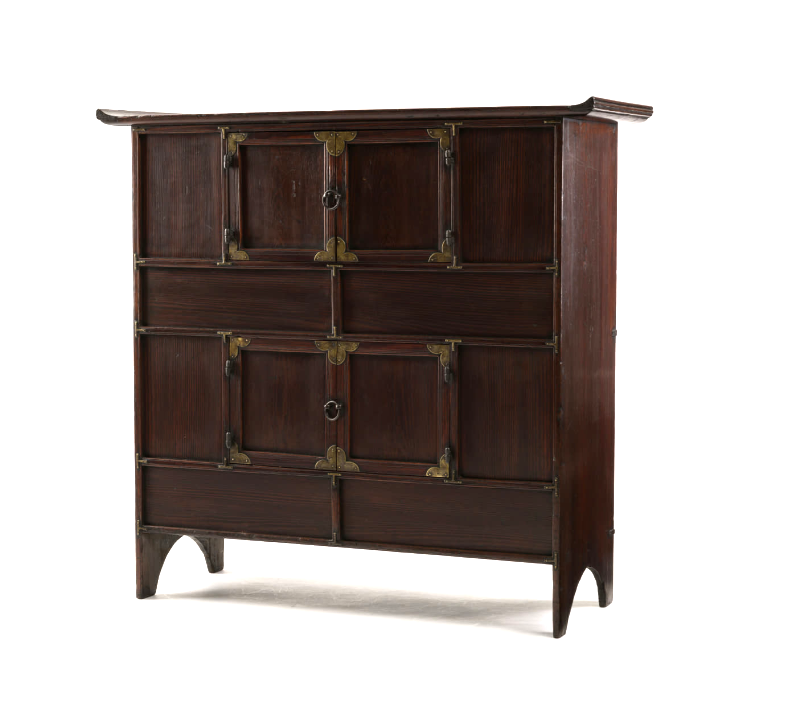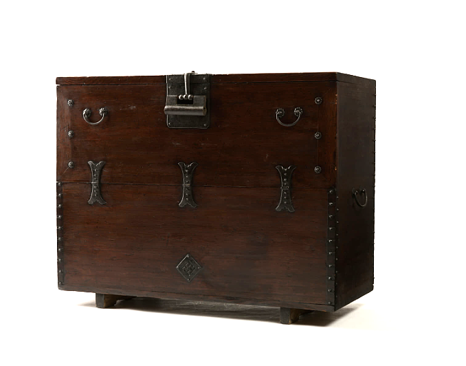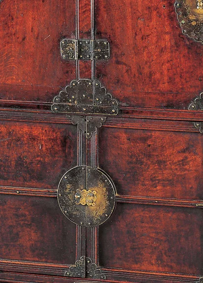 This clothing chest is also known as “Mandarin Duck Chest”since its two sets of harmoniously installed doors resemble couples of mandarin ducks, which are symbols of a loving couple. In general, the compartments with hinged doors were used for valuables and the lower part was for books, clothes or stationary items.