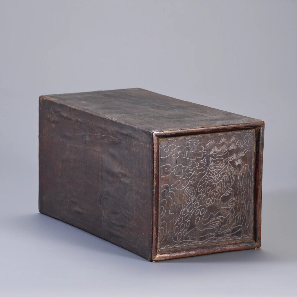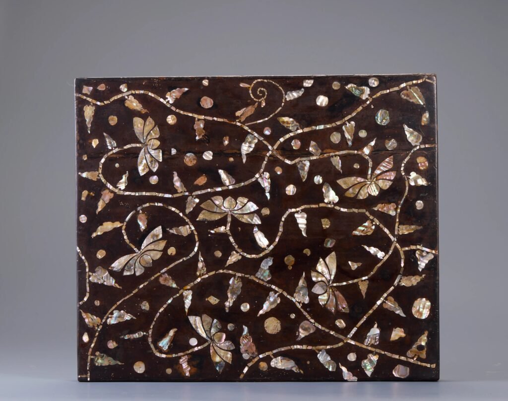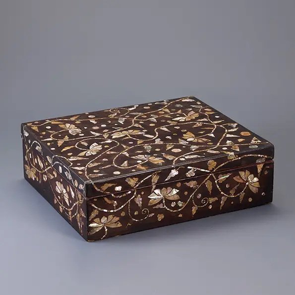 Mother-of-pearl Inlaid Lotus and Arabesque Patterned Clothes Box, Joseon Dynasty, 16th–17th century, H. 12.7 cm; 44.5 × 68.5 cm, National Museum of Korea.