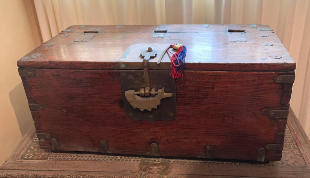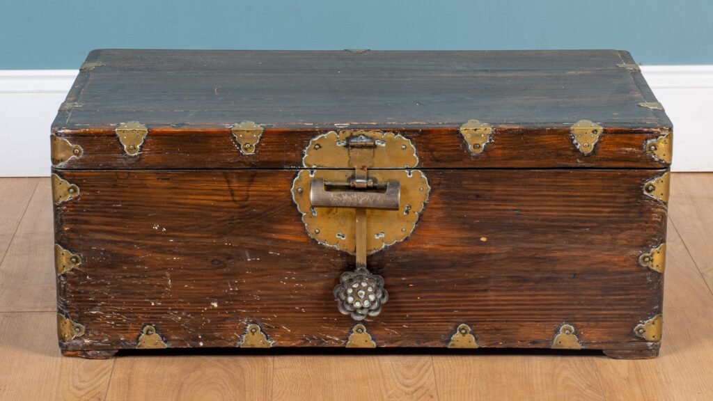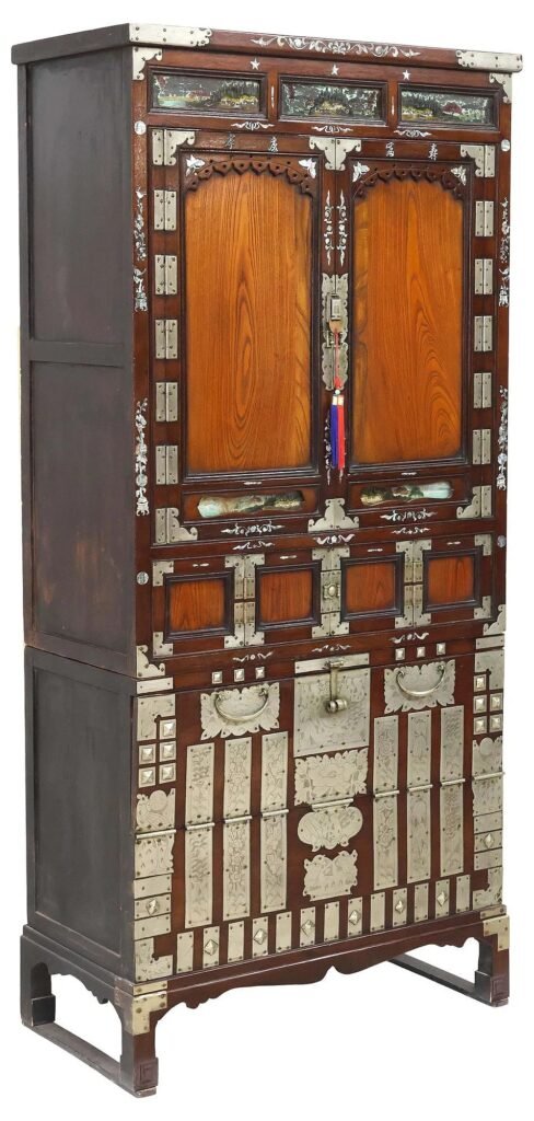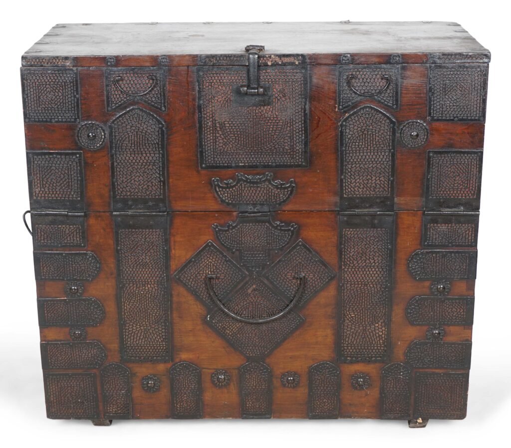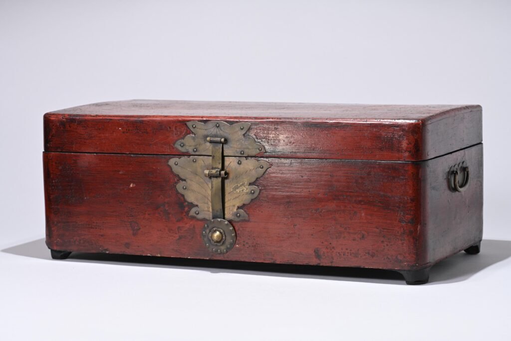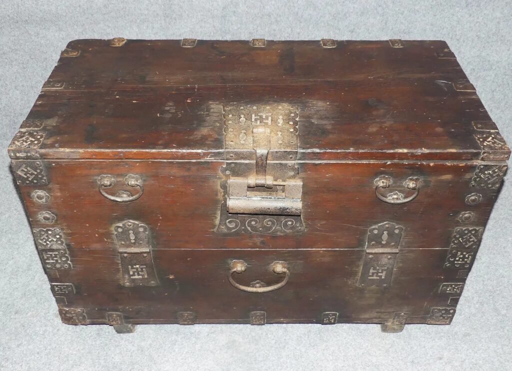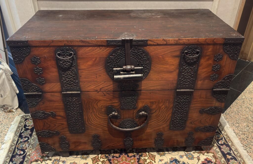 LOT 173. Traditional Korean craftsmanship with iron mounts and a rich wooden case. Size: 33″ x 42″ x 17″. Brooks Auction. Franklinville, NJ, United States. January 7, 2026. Estimate: $300-$600. Starting bid: $50.- SOLD for $100.-