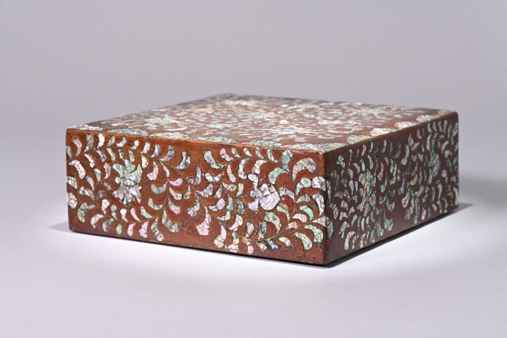 LOT 76. Korean Mother of Pearl Inlaid Lacquer Box Medium: Lacquer with Mother of Pearl Inlay Origin/Year: Korea, 16th Century. Victorins Auctions. Fairfax, VA, United States. February 9, 2026. Estimate: $2,800-$5,600.- Starting bid: $2,500.- SOLD for $4,000.-