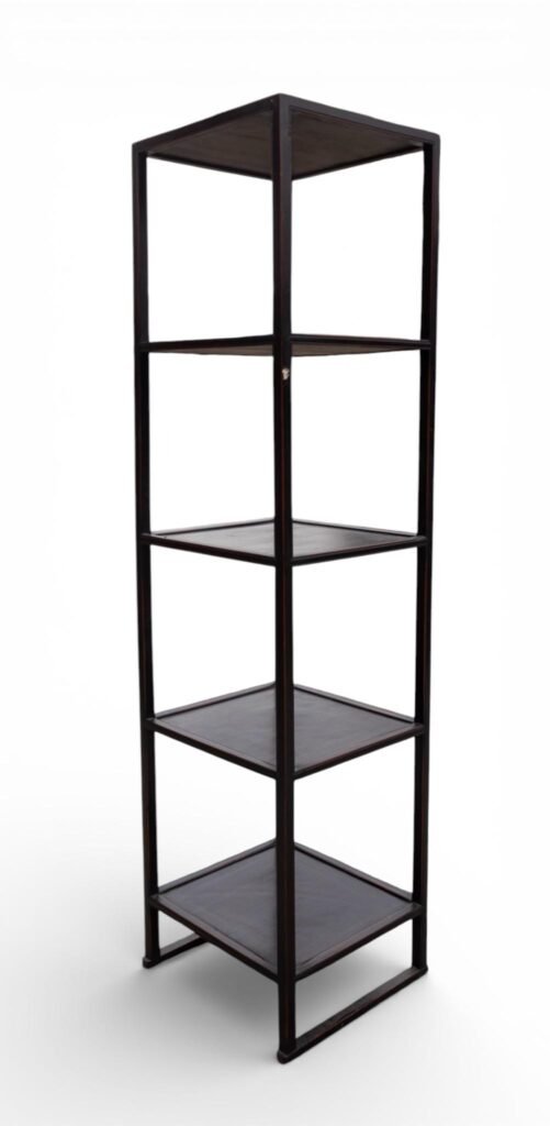 LOT 14.Rare Korean Four-Tier Wooden Book Shelf / Etagere. Black wooden shelf unit with four tiers. Each shelf surface is flat, and the overall design is rectangular with clean, straightforward lines. The piece stands on four vertical supports and has an open-frame design. Measures approx. 66.75″ x 15″ x 15″. Keystone Auctions LLC. York, PA, US. March 29, 2026. Estimate: $1,000 USD – $1,500 USD. Starting bid: $200 USD. SOLD for $225 USD