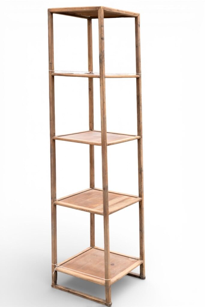 LOT 15.Rare Korean Four-Shelf Wooden Book Shelf / Etagere. Four-tier open shelf storage piece constructed from wood. Natural color wood. Each shelf is evenly spaced, with a rectangular frame. Top shelf in need of repair / loose in frame. Measures approx. 61″ x 15″ x 15″. Keystone Auctions LLC. York, PA, US. March 29, 2026. Estimate: $1,000 USD – $1,500 USD. Starting bid: $200 USD. SOLD for $200 USD