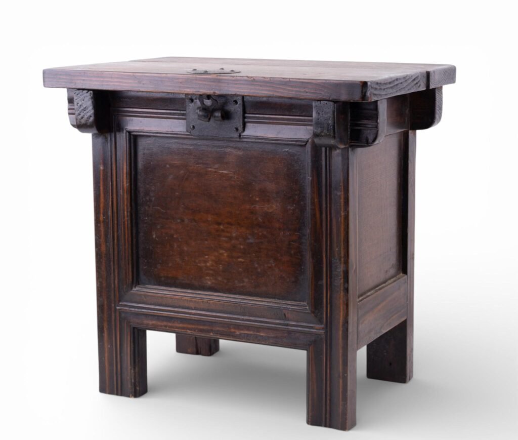LOT 17.Korean Sesame Chest. Featuring a removable lid and sturdy construction. The chest has paneled sides and stands on four solid legs. It incorporates a latch mechanism on the lid. Measures approx. 15.5″ H x 16″ W x 11″ D. Keystone Auctions LLC. York, PA, US. March 29, 2026. Estimate: $100 USD – $200 USD. Starting bid: $50 USD. SOLD for $275 USD
