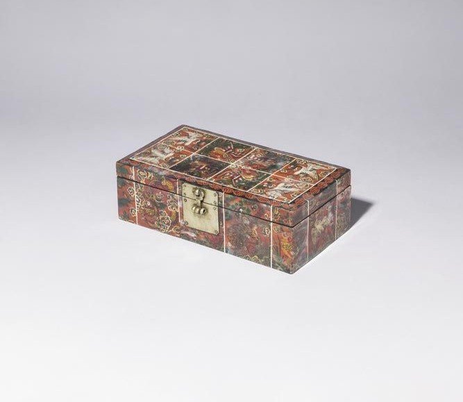 LOT 43. Joseon dynasty hwagak (reverse-painted oxhorn-applied) decorative box with design of ten symbols of longevity H12.3xW30x27.9cm, with a box, with a lock. Mainichi Auction. Sale 846. Asian Antiques Main Sale. TOC Ariake West Tower 5F, Ariake 3-5-7, Koto Ward 135-0063 Tokyo April 11, 2026. Estimate: JPY 4,000,000 – 6,000,000.- (€21,746 – 32,619) UNSOLD.
