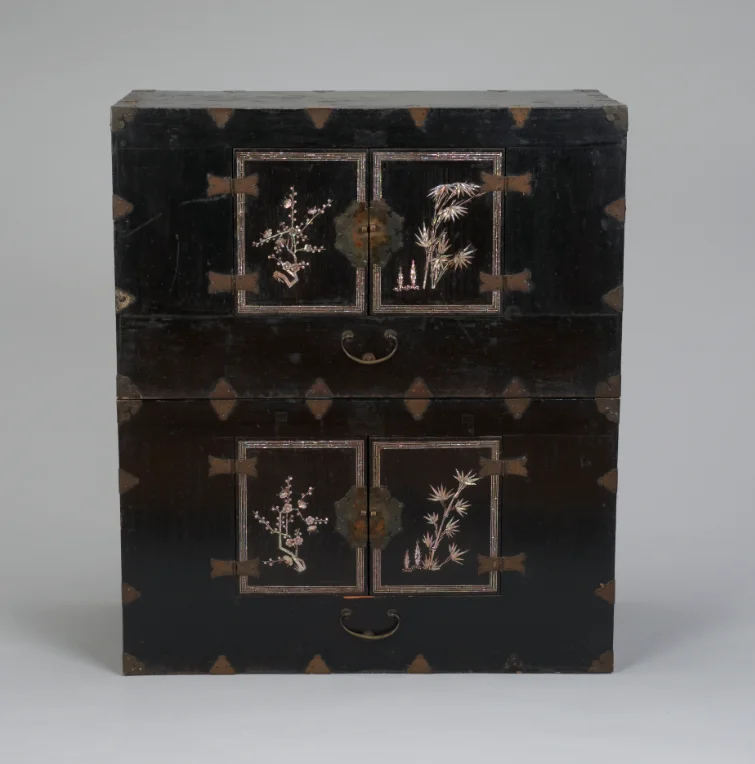 Paulownia wood. Doors inlaid with mother pf pearl. Yellow brass design. 19th century. Collection Korean National Museum.