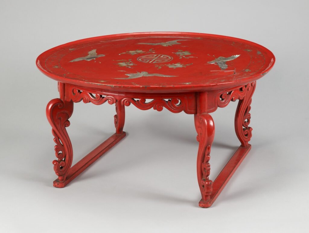 This technique provided a glossy, decorative surface for furniture. However, because red lacquer was a costly pigment, it was primarily used for ceremonial items in the royal palace.
